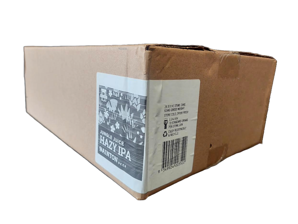This time we ran out of our branded 16 pack cartons while packing this month's fresh batch of Jungle Juice, so we've had to pack 60 cases into plain 24 pack boxes.