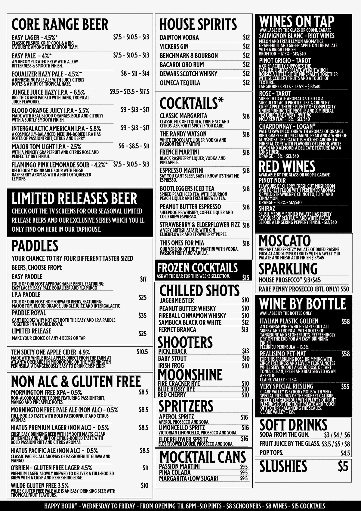 Be wowed by our award-winning and unique beers, or sip on some of our more approachable and sessionable styles. Plus, we've got a great selection of local wines and spirits, as well as a food menu that includes mouth-watering burgers and delicious share plates.