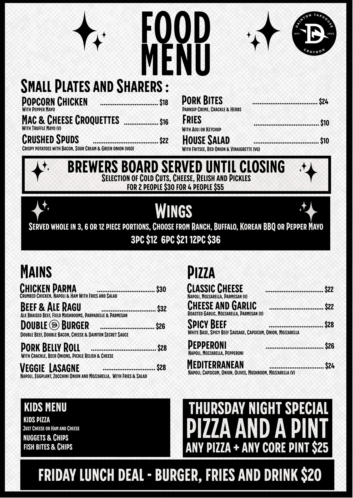 Our Croydon Taphouse is open to the public five days a week from Wednesday to Sunday. Enjoy a range of core and limited Dainton releases, as well as a locally-sourced cider, all expertly poured from our 14 custom taps.